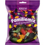 BLANDAT SLIK: glukossirap, socker, grisgelatin, modifierad stärkelse (majs, VETE), surhetsregulator (E330), melass, ammoniumklorid, lakritsrotextrakt, färgämnen (E100, E120, E141, E153), naturliga aromer, vegetabilisk olja (kokos), ytbehandlingsmedel (E903). FAMILJEMIX: glukossirap, socker, modifierad stärkelse (majs, VETE), grisgelatin, melass, lakritsrotextrakt, ammoniumklorid, surhetsreglerande medel (E330), färgämnen (E100, E120, E141, E150c, E153), naturlig arom, vegetabilisk olja (kokos), ytbehandlingsmedel (E903).