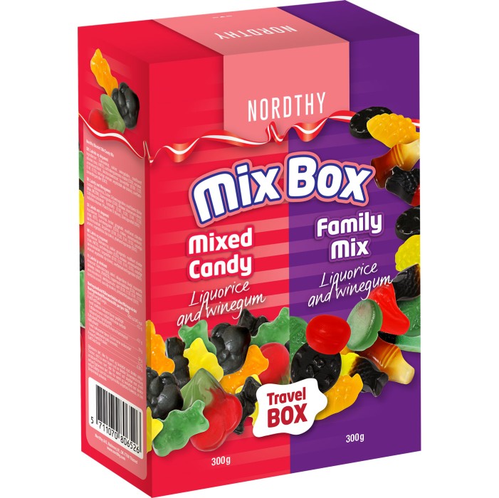 Travelbox godis blandat med familjemix och mix godis. En riktigt trevlig förpackningslösning, perfekt till dig själv eller gåva.