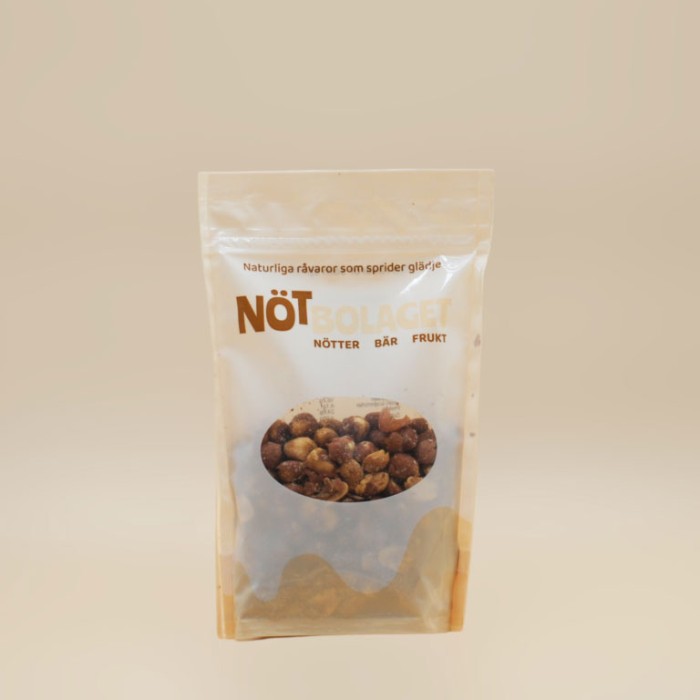 Nötbolagets rostade jordnötter är en tidlös klassiker med fyllig nötighet och härligt krispig textur. Jordnötterna rostas varsamt för att locka fram en djupare smak och ett ordentligt crunch som gör dem lika goda att äta direkt ur påsen som att servera i en skål.