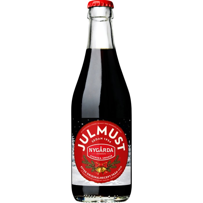 Nygårdas Julmust baserar sig på ett originalrecept från 1910 och smakar som en must ska smaka. Med en perfekt balans mellan sötma, juliga kryddor och härligt skum är vår must älskad av både stora och små.