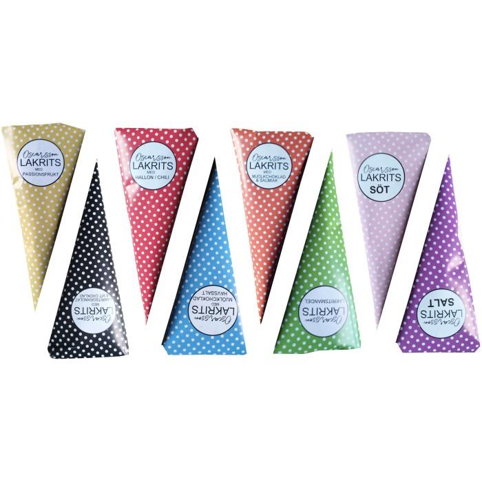 Oscarssons lakrits är producerad i Malmö utan palmolja, gelatin och konstiga tillsatser och med 100 % naturlig smaksättning. Hoppas att du gillar dem lika mycket som vi gör.