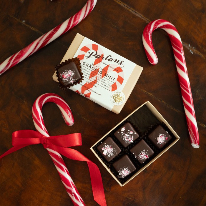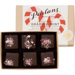 En charmig ask med sex bitar av mjuk kola i choklad, till dig eller till någon du har kär. GRÄDDIG MINT - mjuk och gräddig mintkola i ett fint täcke mörk choklad, toppad med små bitar krossad, krispig polkakaramell från våra kompisar på Gamla stans polkagriskokeri.