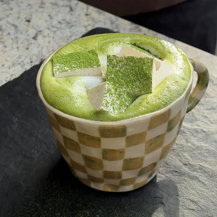 Kokossocker, ceremoniell japansk matcha, naturlig arom, kokosmjölk, salt.