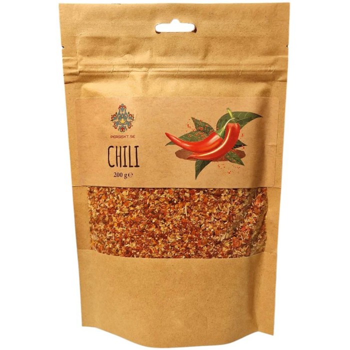 Persiskt Chiliflingor består av krossade chilifrukter med justerbar hetta, levande färg och fruktig underton. Strö över pizza, pasta arrabbiata, chilikryddad choklad, nudelsoppa eller kimchi för att ge rätterna eld och smak efter humör, mod och önskad styrka.