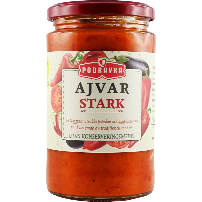 Podravka Ajvar Stark är en grönsaksrelish gjord av fina paprikor och auberginer från Balkan.