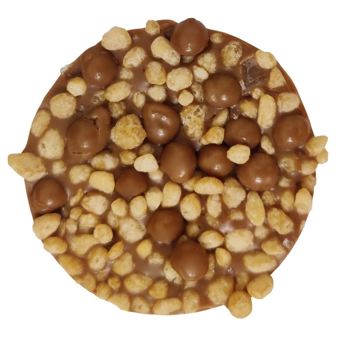 Pralinask med härliga bitar av choklad mums som är gjord på mjölkchoklad. Kommer med dessa tre toppings: Salt Karamell, Hallon & Havssalt.