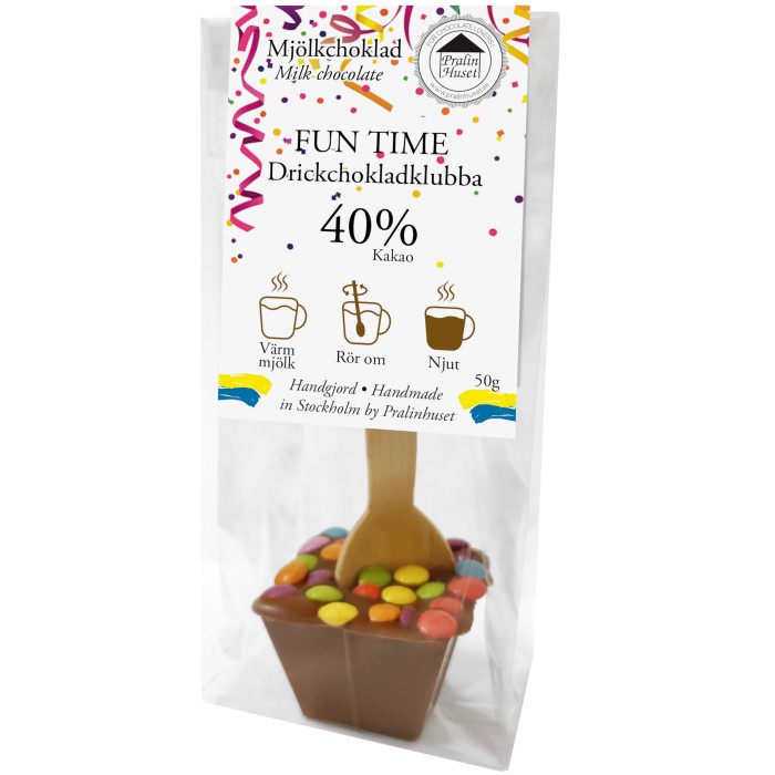 Pralinhuset Drickchokladklubba 40% Fun Time Mjölkchoklad 50g