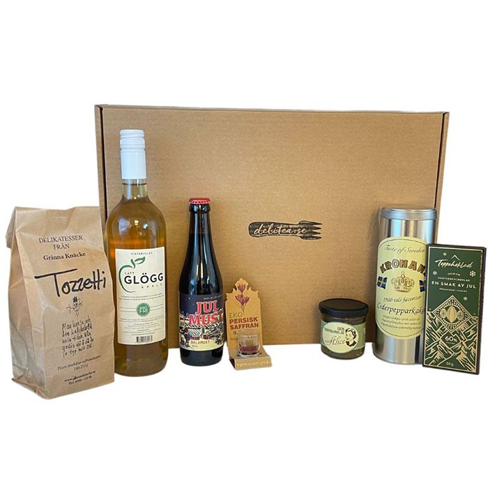 Ge bort en presentlåda som verkligen doftar, smakar och känns som jul, fylld med noggrant utvalda delikatesser som tillsammans skapar en oförglömlig helhetsupplevelse.
