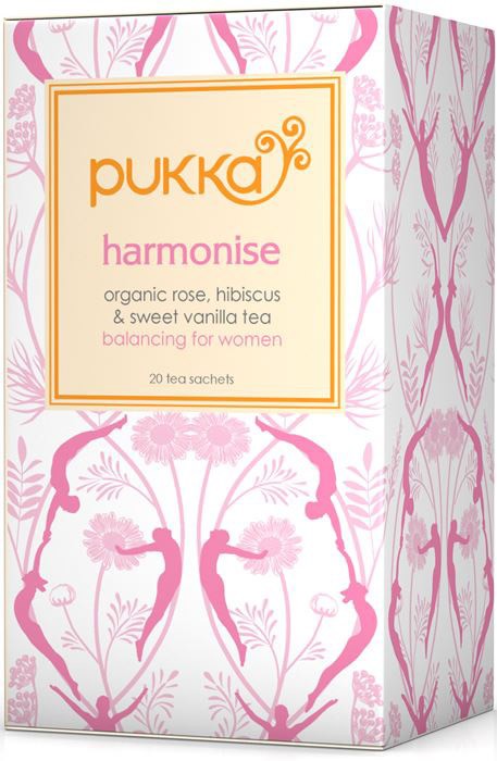 Pukka Harmonise är ett balanserande te för kvinnor med ekologisk ros, vanilj & kamomill. Naturligt koffeinfritt och 100% ekologiskt.