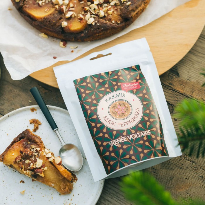 Renée Voltaire Kakmix Mjuk Pepparkaka är en ekologisk, glutenfri och vegansk bakmix skapad för dig som vill njuta av en riktigt saftig och kryddig mjuk pepparkaka , helt utan krångel. Mixen består av en varsamt sammansatt blandning av bovete-, mandel- och tapiokamjöl tillsammans med chiafrön och en perfekt balans av julens klassiska kryddor: ingefära, ceylonkanel, kardemumma, nejlika, vaniljpulver och en nypa salt. Sötad enbart med lite kokossocker. Tillsätt bara vatten och kokosolja, rör ihop och grädda, sedan är det bara att njuta av nybakad mjuk pepparkaka eller fluffiga pepparkaksmuffins med en extra julig smak. Merry Vegan Christmas!
