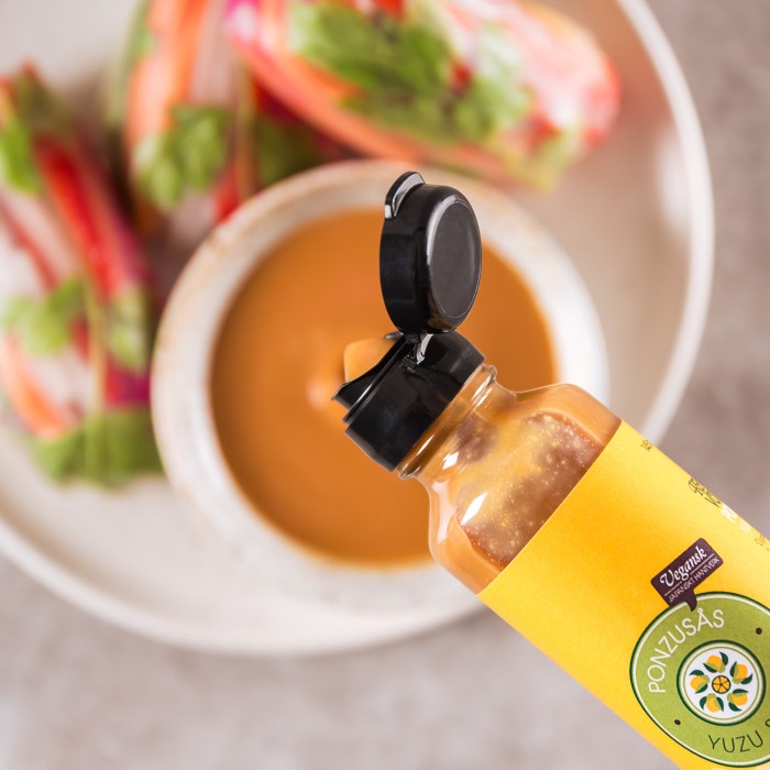 Vegansk krämig Ponzusås från Japan smaksatt med citrusfrukten yuzus fyllighet, lena konsistens och välbalanserade sötma – över 100 års hantverkstradition från Kyusha! Noga utvald soja, risvinäger, yuzu, shiitake och koji blandas varsamt så att den karaktäristiska umamismaken uppstår. Helt utan tillsatser.
