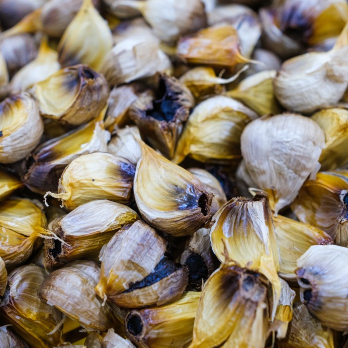 Svart fermenterad vitlök från Kagoshima i Japan med fyllig söt och mild umamismak. Den djupa mörka färgen och den unika smaken uppnås genom en långsam och flera veckor lång fermenteringsprocess, där vitlökens skarpa smaker bryts ner till en karamelliserad och komplex umami-liknande profil.