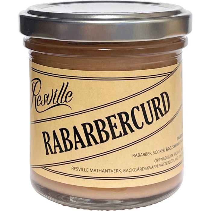 Resville Rabarbercurd är en härligt krämig och balanserat sötsyrlig curd med tydlig smak av rabarber. Den passar utmärkt till Afternoon Tea, på en nyrostad toast, till glass eller som fyllning i bakverk som pajer och pavlova.