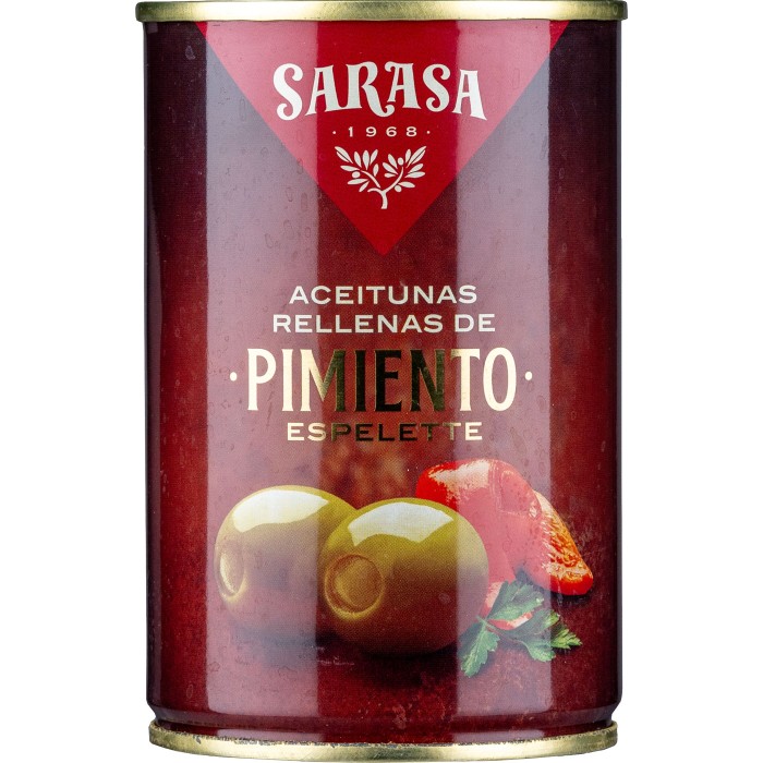 Sarasa Manzanillaoliver utan Kärna med Espelettepeppar erbjuder en spansk smakupplevelse där klassiska gröna manzanillaoliver möter den milda värmen från Espelettepeppar, en chili från Baskien som ger oliverna en subtil kryddighet utan att ta över smaken. De urkärnade oliverna är klara att serveras direkt och passar perfekt som snacks, på tapasbrickan eller som smakrikt inslag i sallader och matlagning.