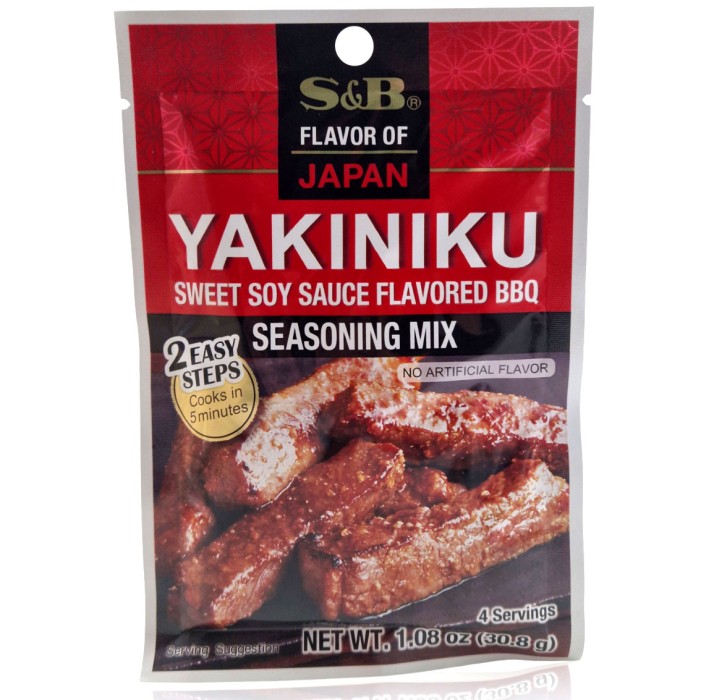 S&B:s Yakiniku Seasoning Mix är en härlig blandning av japanska kryddor som ger en autentisk yakiniku-smak med perfekt balans mellan sötma, sälta och umami. Den passar utmärkt till både kött, fisk och grönsaker och kan användas som rub, marinad eller krydda under tillagning. Oavsett om du grillar utomhus eller steker inomhus ger kryddmixen en krispig yta och fyllig smak som påminner om japansk barbecue. För extra djup smak kan du marinera råvarorna innan tillagning.