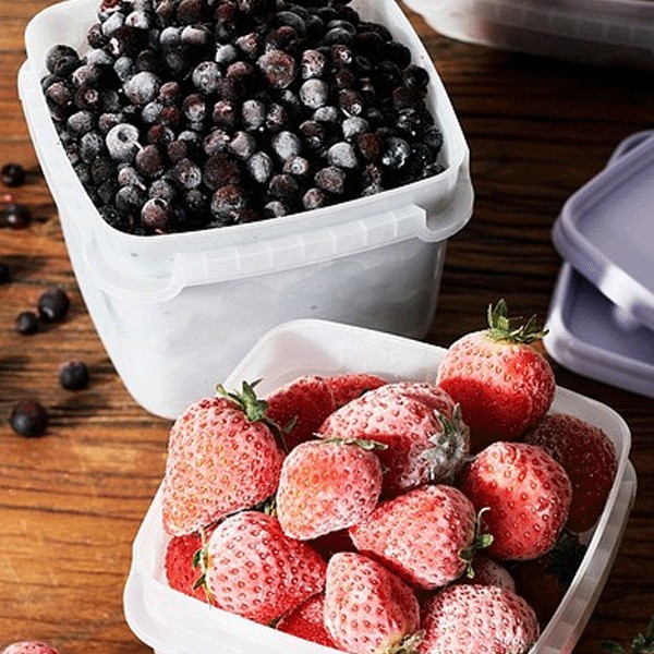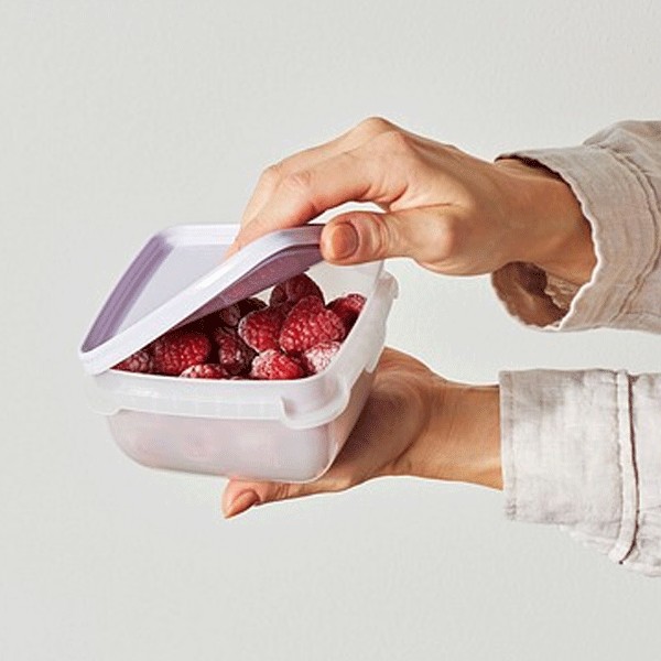 Hörnen är utformade för att göra locket lätt att öppna och samma lock passar flera olika storlekar inom serien. Varje burk rymmer 0,5 liter och är idealisk för att frysa in bär, svamp eller mindre mängder rester.