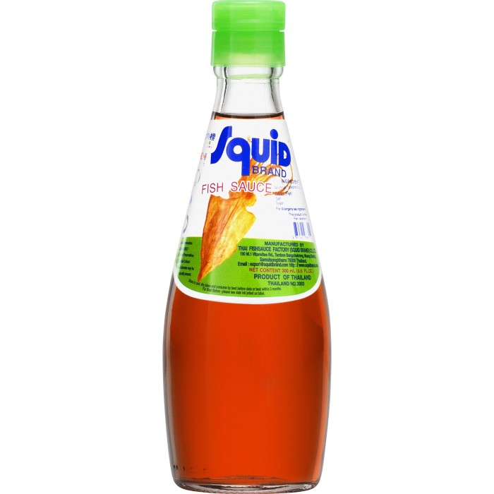 Squid Brand Fisksås Original Nam Pla ger en aromatisk smak av nötter och lagrad ost, eftersom den lagrats i minst 18 månader. Den är alltså lite mer än flytande salt som fisksås ofta används som. Fisksåsen används främst som sälta i matlagningen men är den lagrad i minst 18 månader så ger den också en aromatisk upplevelse med smak av lagrad ost och nötter.