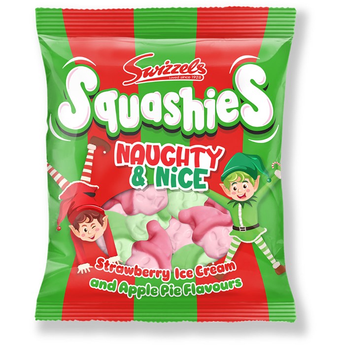 Upptäck det lekfulla julgodiset med en twist! Mjuka godisar med smak av jordgubbsglass och äppelpaj. Vågar du smaka båda sidor? Naughty eller Nice – valet är ditt!