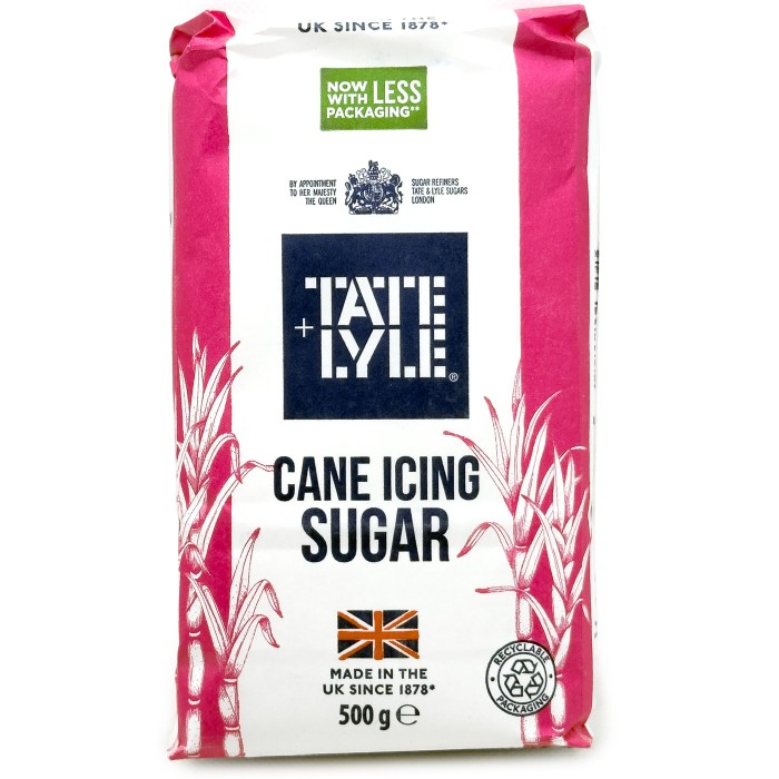 Tate & Lyle's Cane Icing Sugar är ett måste i köket för dig som älskar att baka. Tillverkad av rent rörsocker, är den fint malen för en slät och len textur som är perfekt för glasyr, pudring och bakning. Blanda det enkelt med vatten för att skapa en glansig glasyr som passar perfekt till alla sorters kakor.