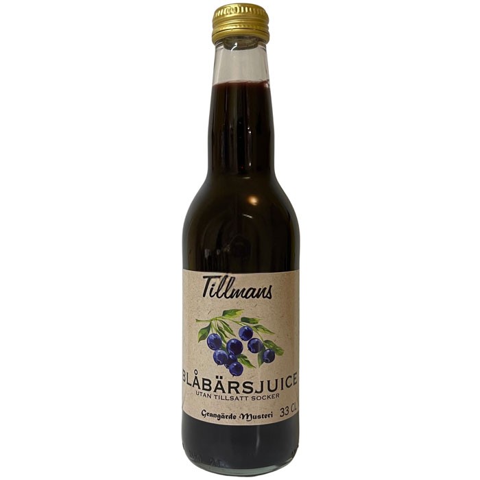 Tillmans Blåbärsjuice är gjord på 100% blåbär och innehåller inget tillsatt socker, inget vatten och inga tillsatser. En kraftfull och fyllig juice med tydlig blåbärskaraktär och naturligt djup i smaken. Perfekt att njuta som den är, gärna väl kyld, eller som ett smakrikt inslag i smoothie och frukostskål när du vill ha ren blåbärsglädje.