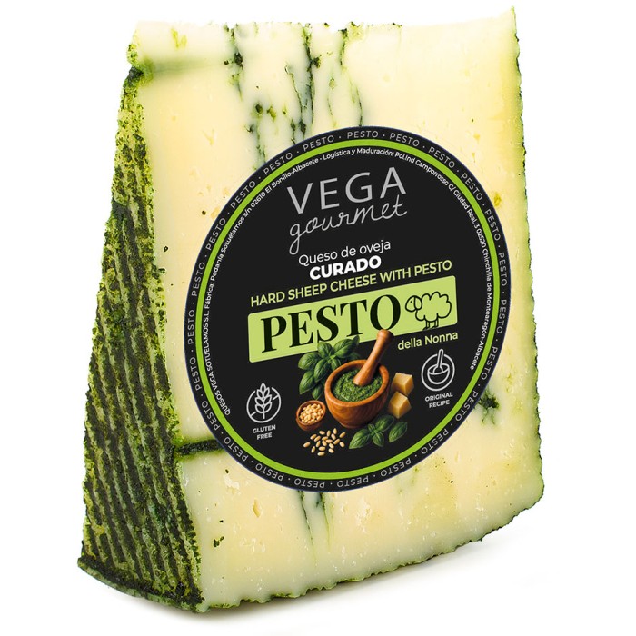 Vega Mancha Fårost Pesto 6 månader är en unik spansk fårost som smaksatts med aromatisk grön pesto och lagrats i 6 månader för att utveckla sin fylliga och balanserade smak.