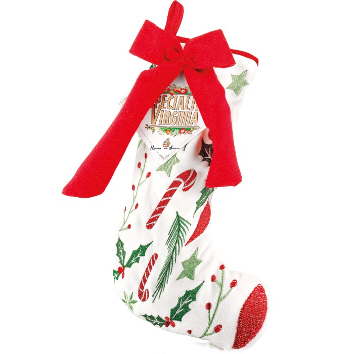 En charmig julstrumpa fylld med blandat italiensk julgodis i form av individuellt inslagna chokladkakor från Virginia. Julstrumpan är inte bara en förpackning utan en vacker och dekorativ detalj som passar perfekt att hänga på spiselkransen eller som en unik gåva till någon som uppskattar äkta italiensk jultradition.