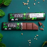Vivani vegansk nougat hasselnöt är ett smidigt chokladsnack i riegelformat med krämig mörk hasselnötsnougat och knaprig finish helt utan mjölk. Den höga andelen hasselnötter ger en fyllig nötig smak och en len konsistens som känns lyxig i varje tugga.