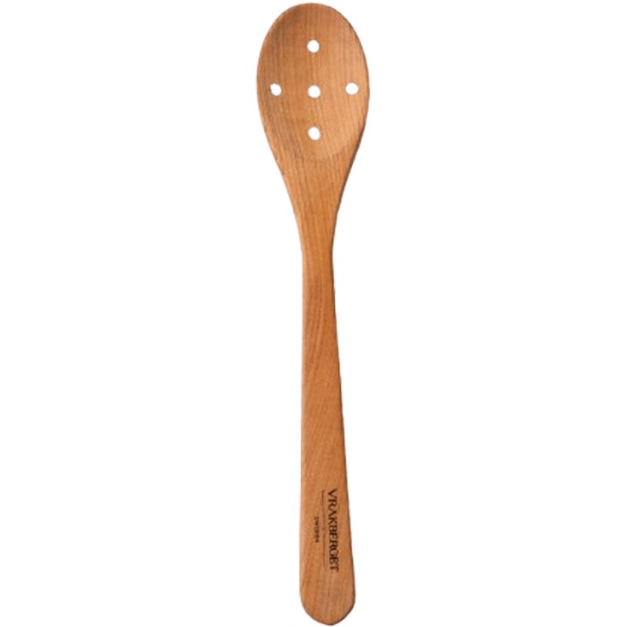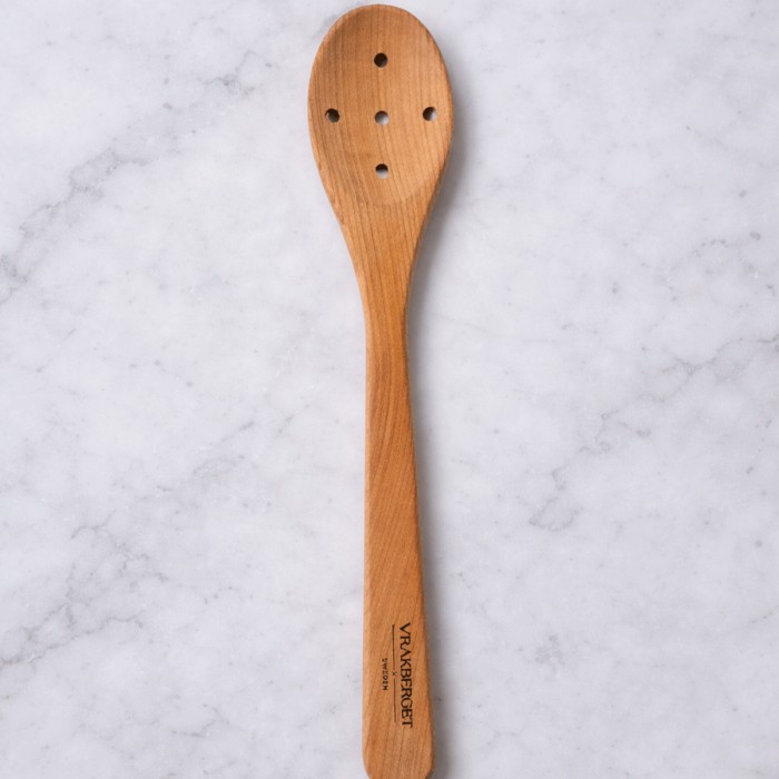 Vrakberget Hålslev i Körsbärsträ är ett funktionellt och stilrent köksredskap i obehandlat körsbärsträ. De praktiska hålen gör det enkelt att lyfta upp råvaror ur vätska samtidigt som vätskan rinner av, vilket gör den idealisk för både matlagning och servering.
