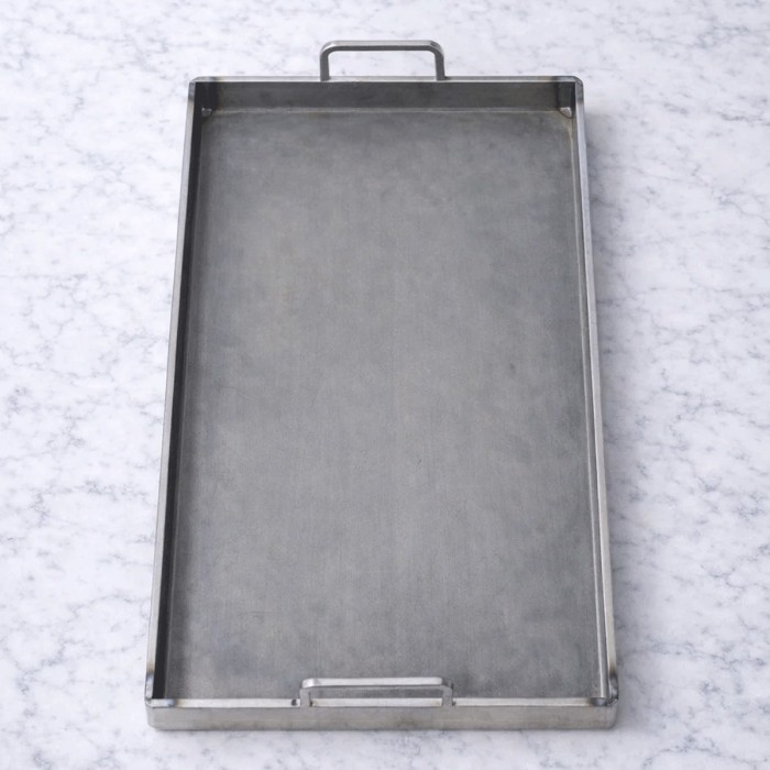 Vrakberget Stekbricka Sten Sture är en rustik och slitstark stekbricka med handtag, tillverkad i 5 mm varmvalsat kolstål och producerad i Stockholm. Den leder värme effektivt och klarar höga temperaturer, vilket gör den idealisk för både matlagning och servering.