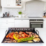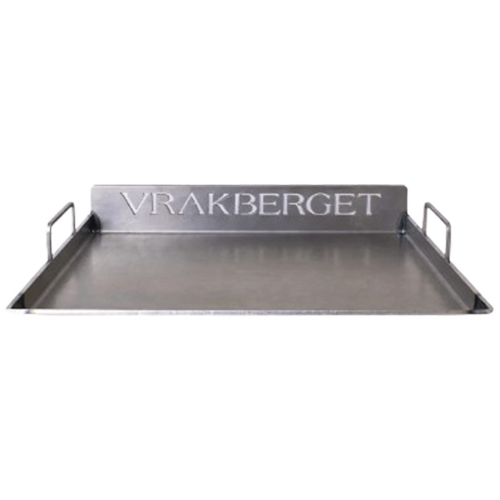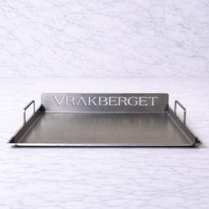 Vrakberget Stekbricka Vikingsborg är en rustik och kraftfull stekbricka med handtag och uppvikt framkant, tillverkad i 5 mm varmvalsat kolstål och producerad i Stockholm. Som den största modellen i serien erbjuder den generös yta för både matlagning och servering.