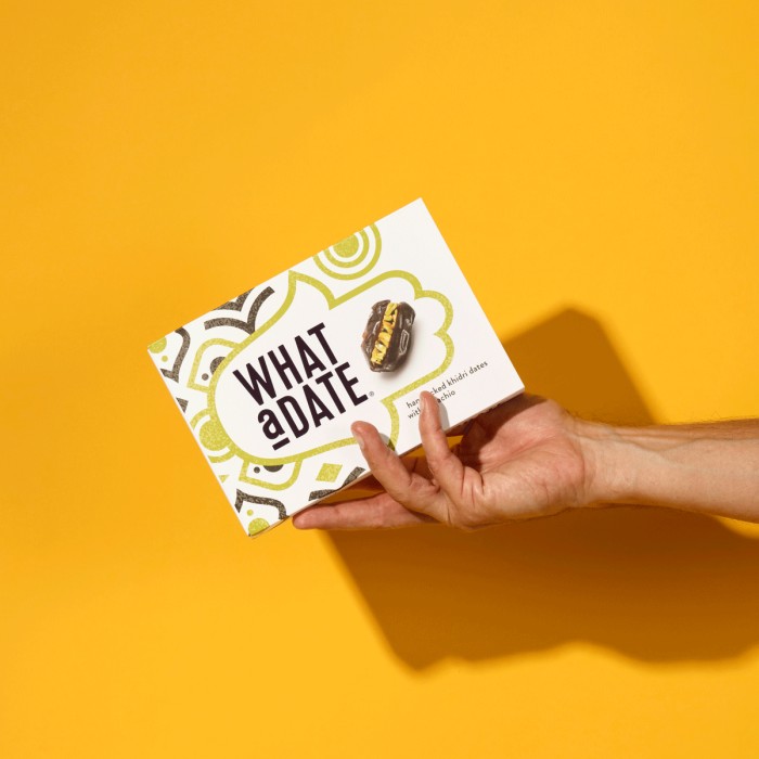 What a Date Pistachio kombinerar mörka dadlar med rik karamellsmak och generösa flagor av pistage. Pistagen omsluts av dadelsirap som ger en mjuk och lätt seg konsistens samtidigt som nötigheten framhävs. Resultatet är ett elegant snacks där sötma och nötighet möts i en balanserad smakupplevelse. Tillverkad med rena ingredienser utan aromer, fyllnadsmedel, konserveringsmedel eller smakförstärkare.