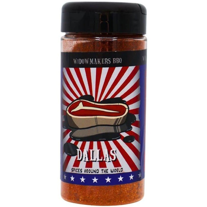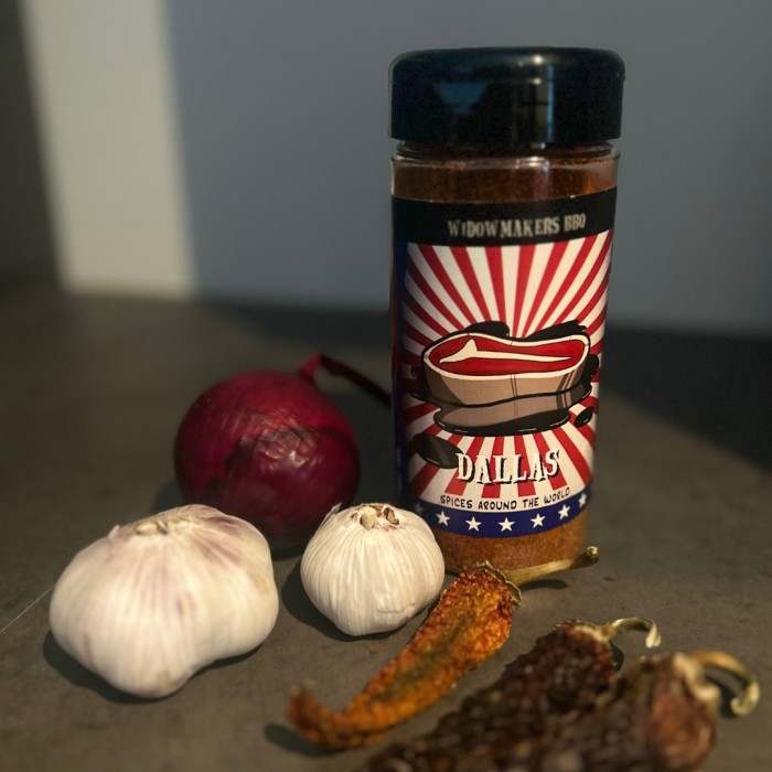 Dallas från Widowmakers BBQ är en kraftfull och rökig rub & grillkrydda skapad för de tyngre och mörkare köttdetaljerna. Kryddmixen kombinerar en lätt rökig profil med tydlig men balanserad hetta från cayennepeppar och ancho chili. Resultatet är en djup, robust smak som gör sig perfekt på brisket, oxbringa, högrev och andra köttstycken som får gå länge i rökaren eller på grillen.